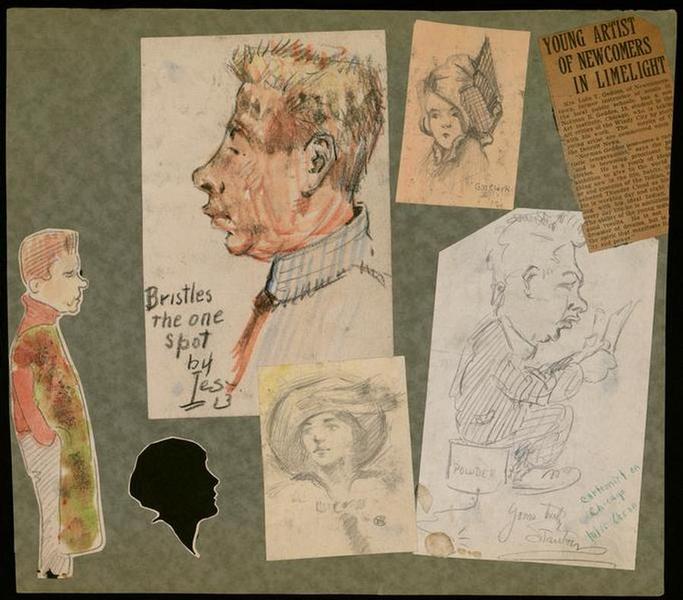 NBG sketches from scrapbook, memos, clippings, obituary.
