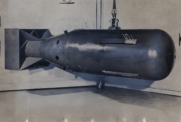 The US Defense Department and the Atomic Energy Commission released for the first time this photo of the "Little Boy" atomic bomb that was dropped on Hiroshima in 1945.