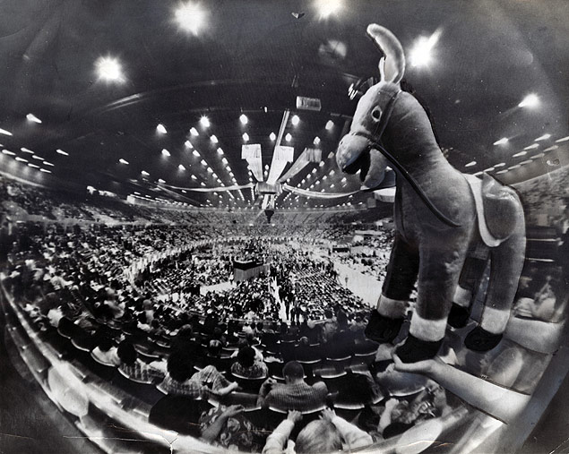 ITEM CAPTION   The new Nikon camera's "Fish-Eye" lens is employed to capture the scene of the overall Democratic National Convention scene in Los Angeles, California.