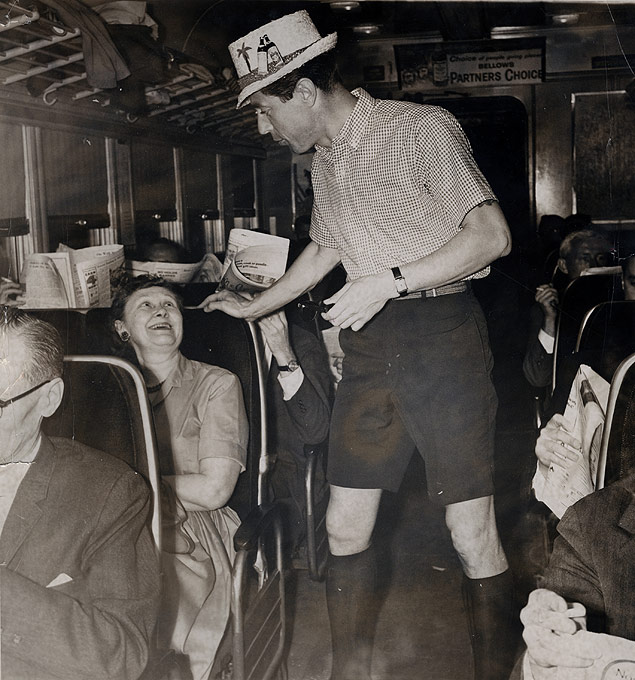 A men's fashion show draws the attention of only one passenger aboard the New Haven commuter train.